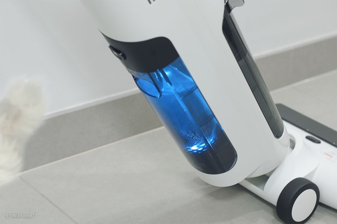 米家产品除了善于把颜值做上去、把价格打下之外,配置上总还是能给你带来亮点,在1000~1500档位都比较少见的电解水除菌功能直接在者999级别的洗地机上标配了,常见细菌去除率达到了99.99 %,按照以往除菌液平均3个月使用1瓶,这么下来,一年节省至少200元清洁剂。运行中,清水箱亮起的蓝光和细密冒泡也特别的未来科技感。也悄咪咪说一句,售价过千的米家洗地机2 lite都还没有电解水杀菌功能。