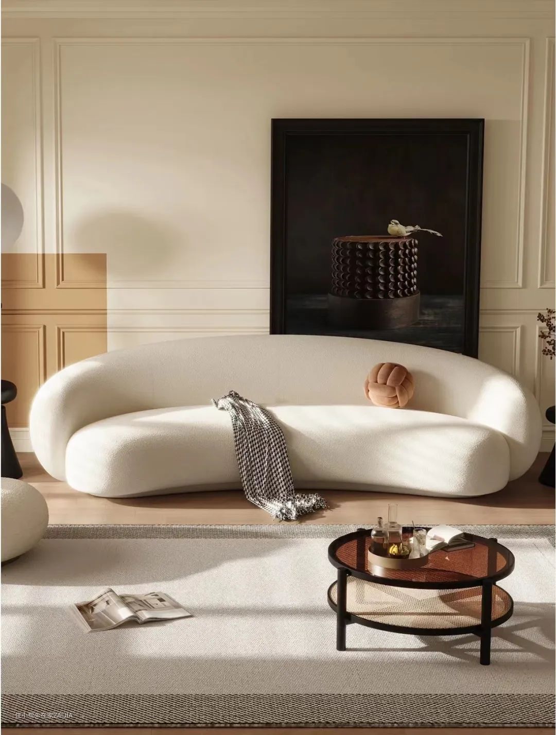 相比之下,选择线条简洁、造型流畅的弧形沙发则要机智的多,现代简练的设计既有法式的曲线与浪漫,又能轻松适配其他风格,如中古风、侘寂风、极简风、北欧风等。