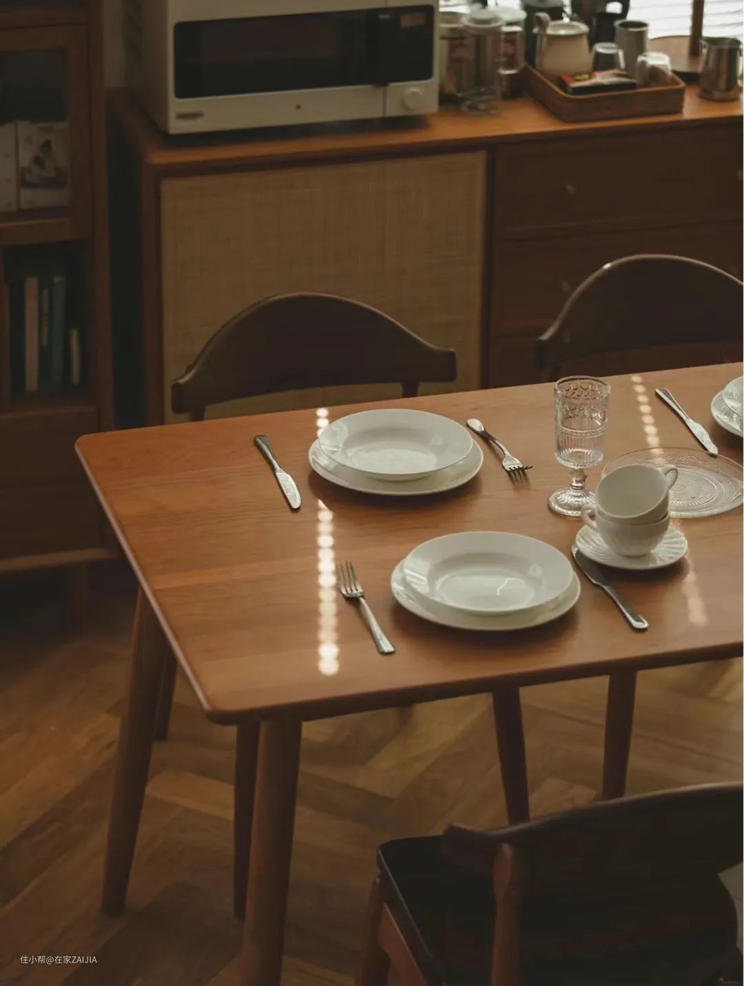 比如木邻托利诺餐桌,尺寸比例非常好,大气又不失精致,简约的设计简单纯粹,樱桃木天然的色泽和纹理有种独特的温润质感。搭配原木风、复古风、中古风、北欧风甚至现代风都不违和。