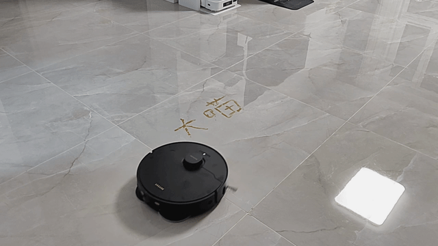 追觅X30 Pro相对扫的部分来讲更注重于拖,在机器底部做了个机械臂,拖布可以伸出来,贴边角进行清洁。这个功能挺不错的,可以将墙边擦干净,效果不错,如下所示:
