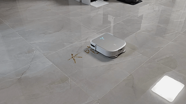 接下来我们进入实测环节,大喵将酱油绘制在地面5分钟,分别用这三款机器人进行扫拖2次,我们看下最后实际拖地效果到底如何,如下: