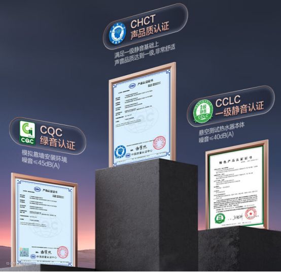 正是通过硬件+软件方面的系统性消音技术,美的安睡M9 Max才能把噪音控制在40dB以内,获得CQC、CCLC、CHCT这三大一级静音认证,平时在使用热水时和冰箱运行时的声音差不多,非常安静。