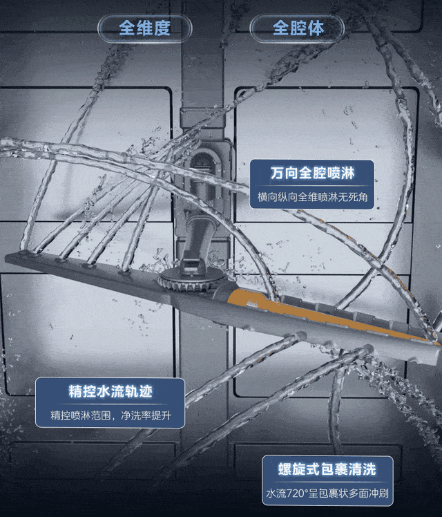 美的万向洗碗机星河版的优势体现在搭载的美的专利万向喷淋系统上,可以兼顾上下左右,喷淋覆盖率可以达到98%,通过45000pa以上的螺旋式高压立体水流对餐具进行720°包裹清洗,不留缝隙死角,比普通喷淋臂洗得更干净;搭载的BLDC直流变频电机在面对不同材质的餐具时可柔克刚,在洗净餐具的同时还能起到保护餐具的效果,同时还支持滤网自清洁功能,省去了每次使用后手洗滤网的烦恼。