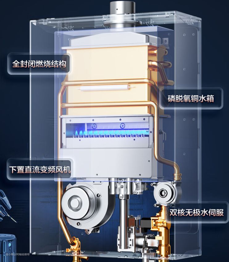 除了降噪效果好以外,美的安睡M9 Max燃气热水器还采用了新一代的密闭稳燃舱技术,燃烧更稳定也更安全,下置直流变频风机抗风11级,狂风暴雪天也不影响使用。双核无极水伺服搭配TSI涡轮双增压+全铜水箱,就算高峰期用水和多点用水情况下,也能保持温度和出水量恒定;并且它还采用了14排宽频火排,支持微火苗和猛火极限加热技术,支持32-65℃水温调节,夏天洗澡也不会很烫。