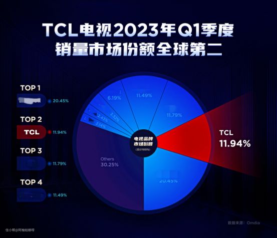 在2023年,TCL还推出了115吋的TCL X11G巨幕电视,采用了5184分区量子点控光技术+XDR 5000nits峰值亮度的配置,是目前QD-Mini LED和超大屏电视的双巅峰。据Omdia的数据统计,TCL电视在2023年1几度销量市场份额已经位居全球TOP2的水平。