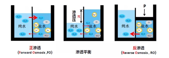 在停止施压的后,纯水会因为渗透差向原水反方向流动,直到两边水的浓度达到一种微妙的平衡,这种渗透才会停止。