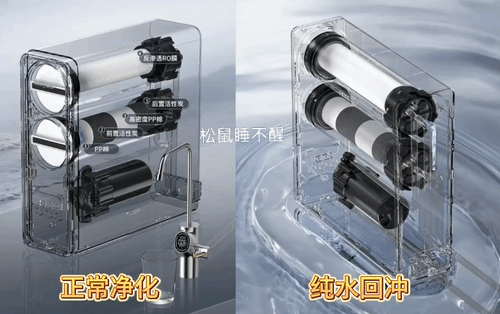 通过优化后的水路设计,在停止接水后的一段时间内,自动延长纯水的制水时间,再用干净的纯水高速冲刷RO膜,用纯水中和并替换掉残留的浓缩废水,这样一来,首杯水的品质也就提高了。