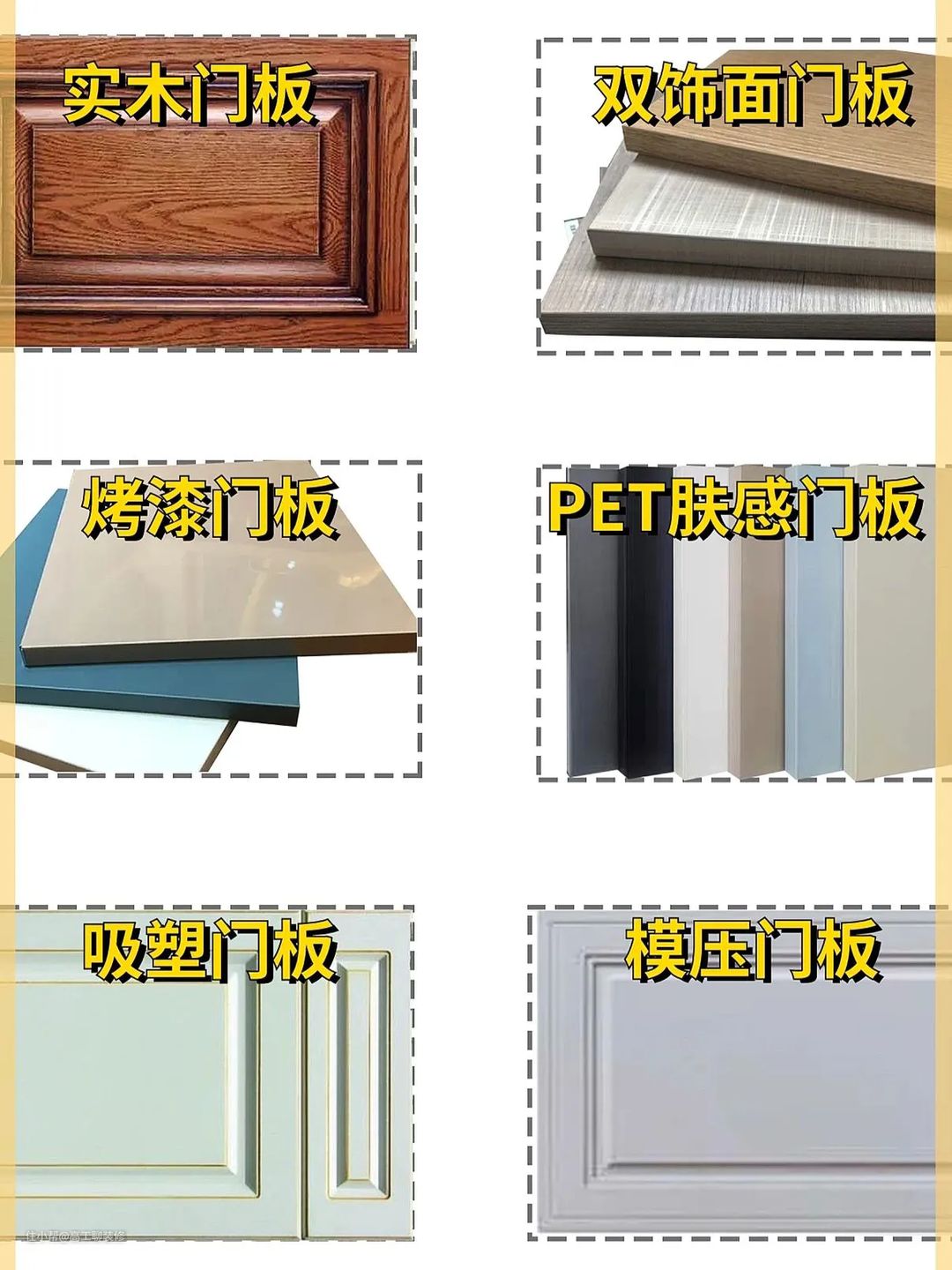 木质橱柜的柜门样式比较多,双饰面、PET膜、吸塑、烤漆等,但是不同样式的柜门其内部基材也是不同的,而现在很流行PET膜的这种柜门,所以基材只能是颗粒板或者禾香板,如果做造型可以考虑吸塑柜门,手头经济条件比较宽裕的话选择烤漆门板,根据自家的实际情况来选择。