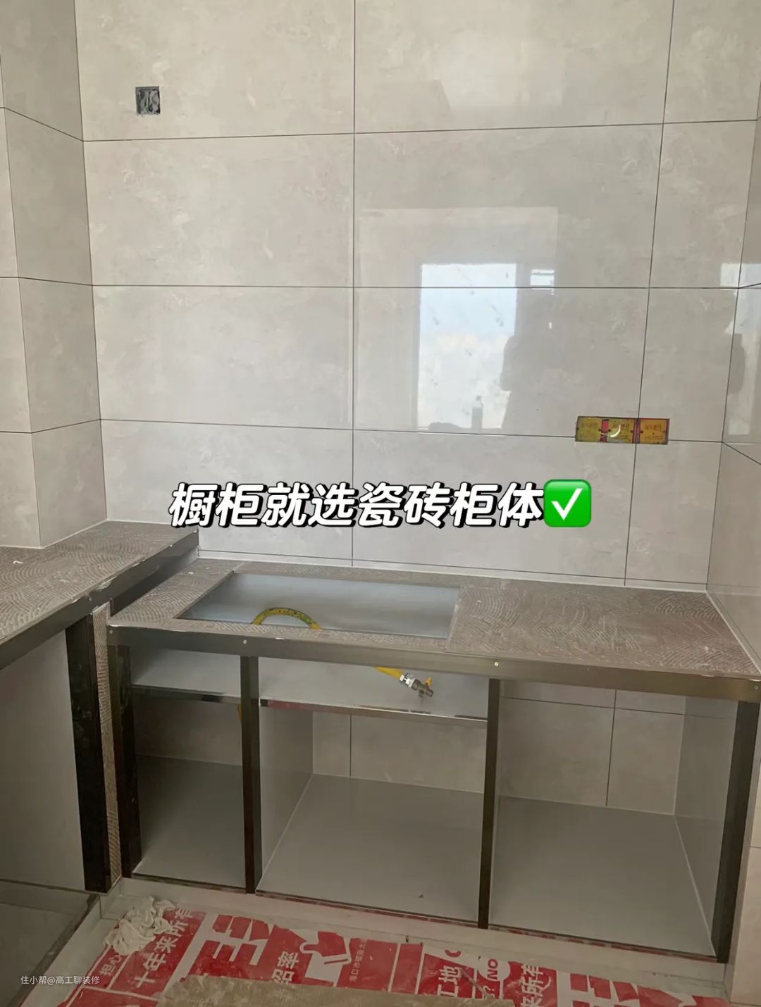 瓷砖橱柜,除了使用水泥砂浆之外就是瓷砖了,所以从环保方面上真的很有说服力,因为木质橱柜一般都是选用刨花板、密度板做基材,就算基材从环保方面上达标,但是加工过程中会使用各种胶水也是有害人的身体健康的,所以对环保等级要求比较高的用户,建议走传统的实用路线,瓷砖橱柜落地的案例颜值也很高啊。