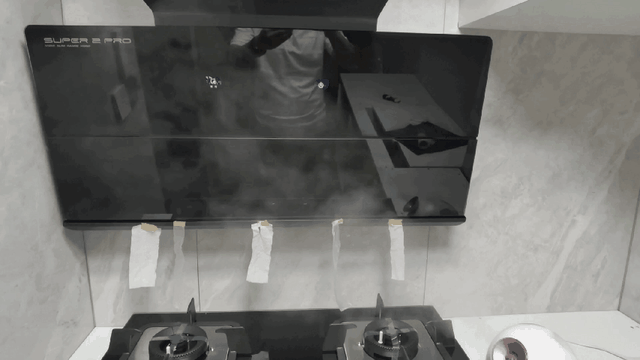 灶台还未装好,我们用一个加湿机模拟油烟产生过程,用最低档即可将所有烟雾秒吸,目视已直线加速度方式被吸走,如果你是一位家庭大厨,云米 AI 油烟机 Super 2 Pro绝对和你行程完美配合,既可让你展示厨艺又能还你清洁室内环境。