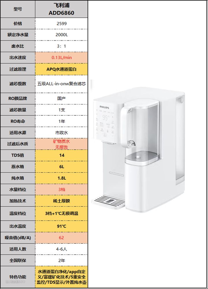 这款飞利浦水质TDS值算低的,噪音也偏小。