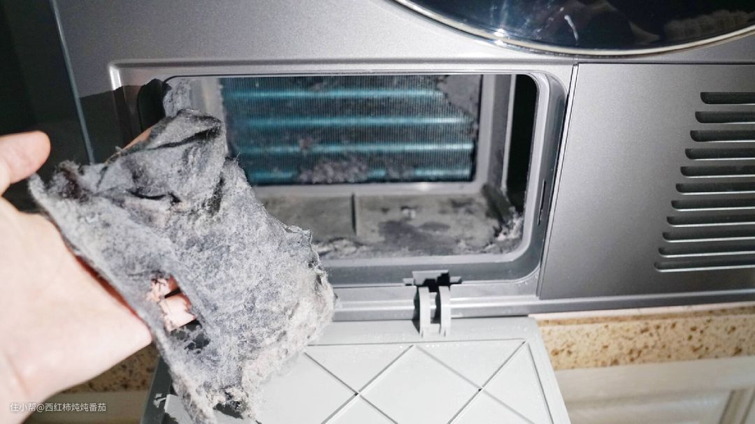 但是滤网还是无法彻底过滤毛屑,于是干脆给干衣机的冷凝器位置开了个孔,并且「教育」消费者要定期打开清洁,否则会降低烘干效率,严重时还会堵塞风道;