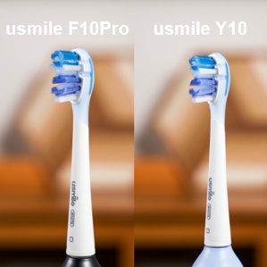 usmile的F10 Pro和Y10,它们用的是同一款专利缓震刷头,双弧设计,刷牙时能更贴近牙齿。