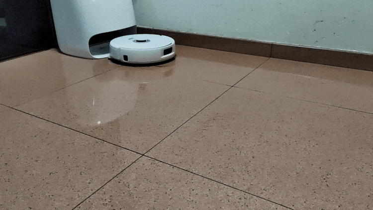 不过提醒一下,如果地面脏污太大的话,扫拖干净机器进基站之后,要记得清洗一下基站底盘哦,保持干净,不然容易出现二次污染。
