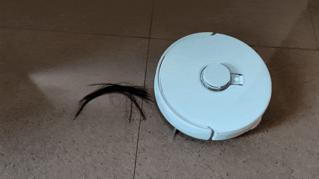 像上图地面这一堆头发,一下就被吸进去之余,翻转过来看也不见缠绕。扫拖完之后,机器人进去基站还会自行进行毛发压缩,及时将滚刷上残留的毛发都吸进尘盒,避免影响后续清扫任务。