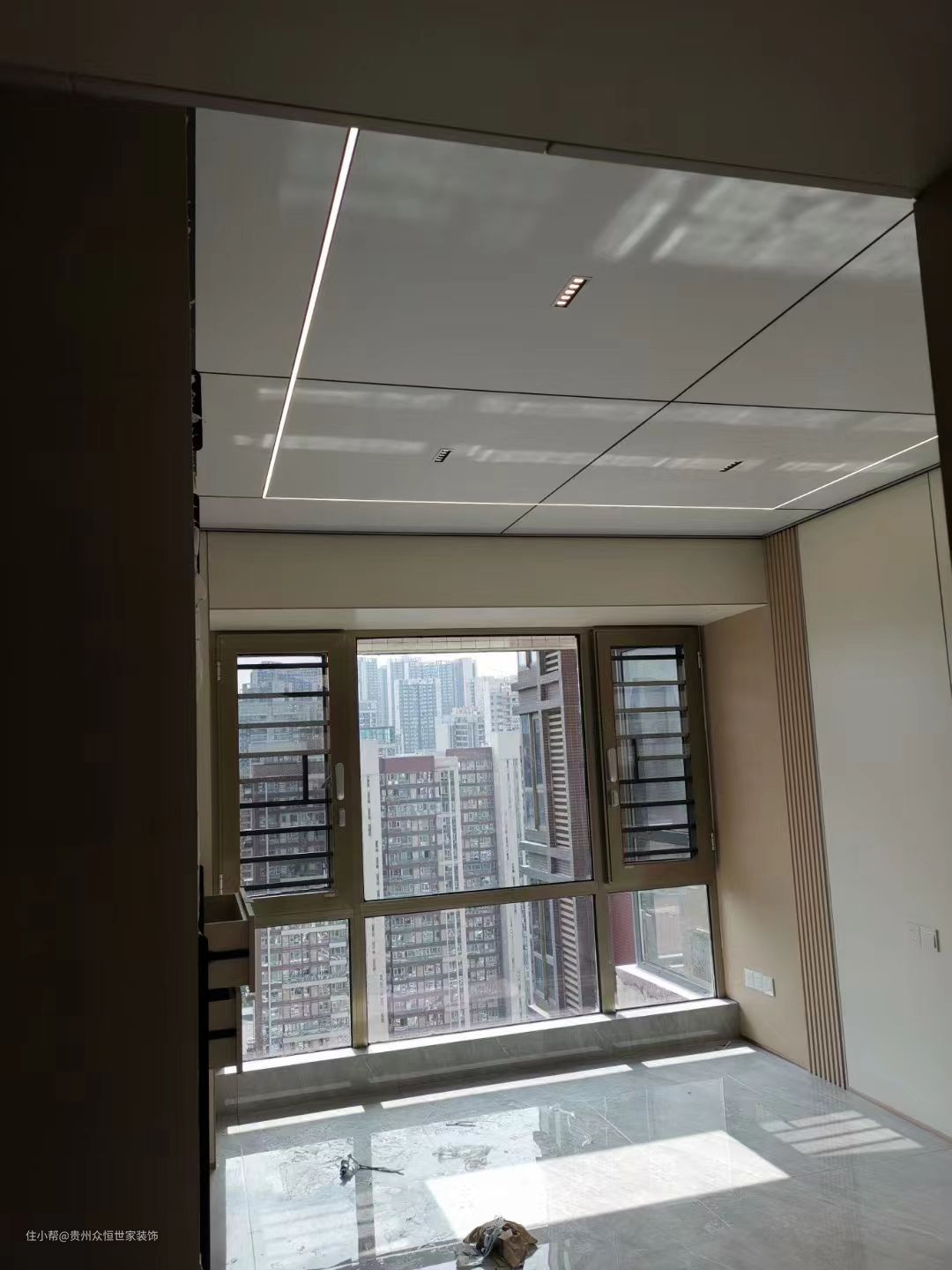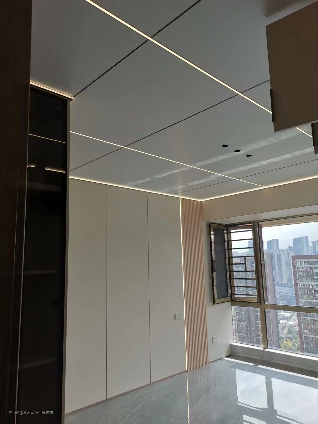 首先我们做了一个类似屏风的柜子分隔板,既方便储物又能起到装饰作用,设计师把空间最大利用化。柜门选择白色以及免拉手设计,表面平整、光滑没有任何凹凸的地方,长虹玻璃时尚简约,易清洁耐看。柜做到顶吊柜,做吊柜能节省空间以及避免空间压抑感。无主灯设计搭配灯带,晕染出一个空间的美观性和浪漫。