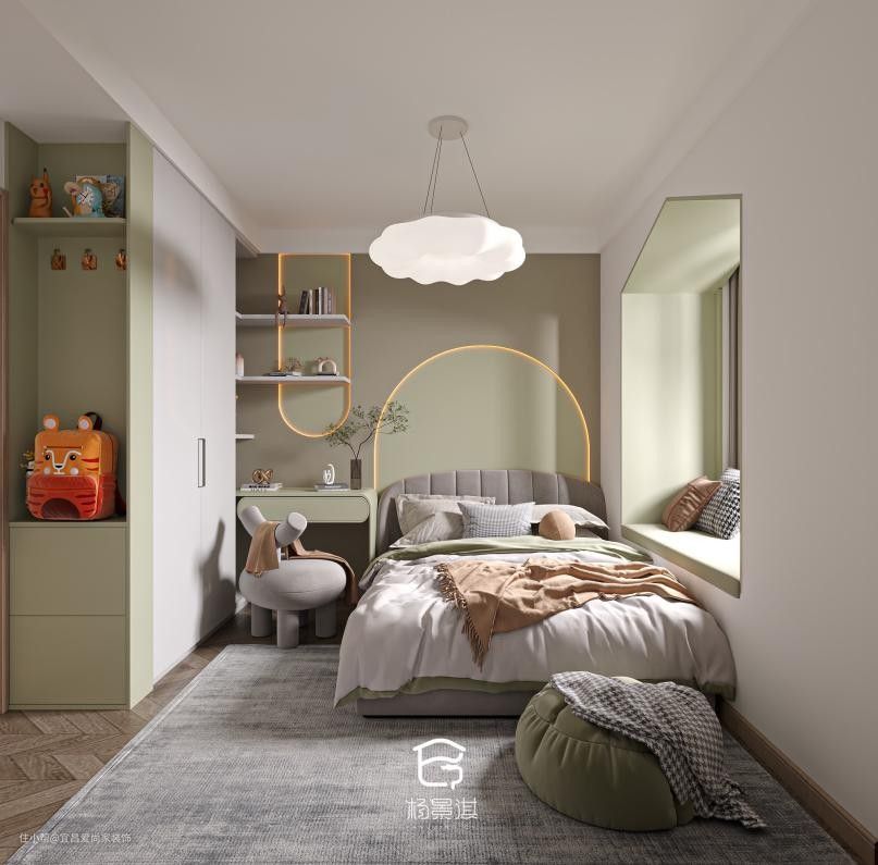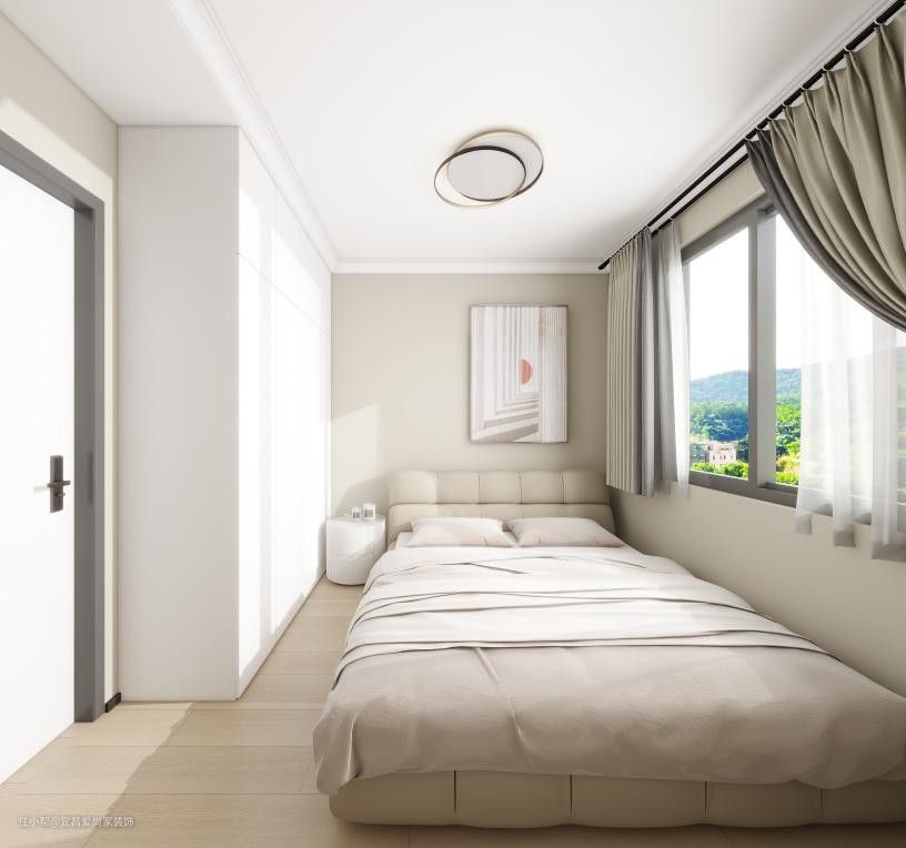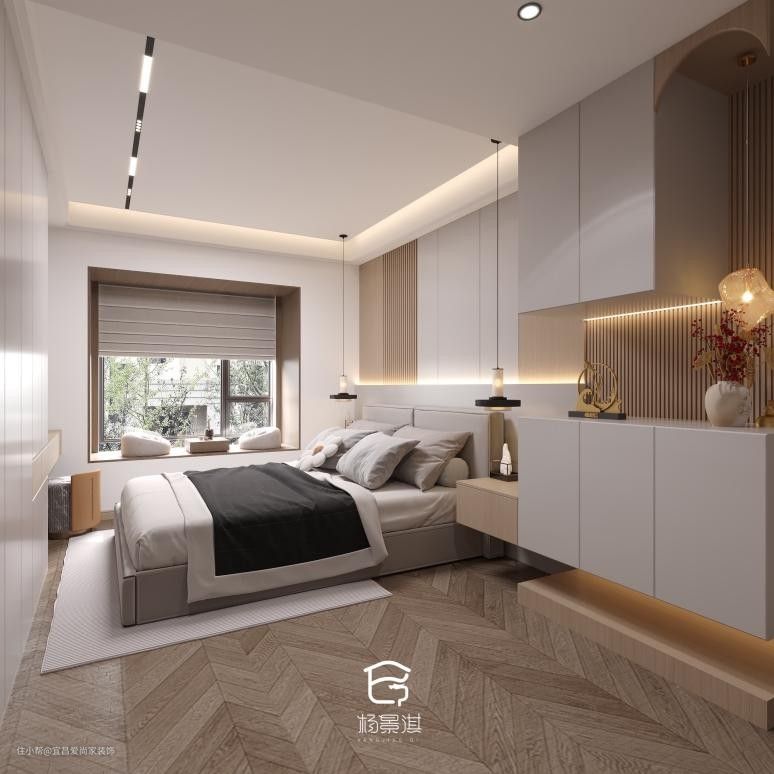 - 卧室以白色打底,原木色作为点缀,和谐又自然,在中式的框架中,融入了现代风格的金属元素。