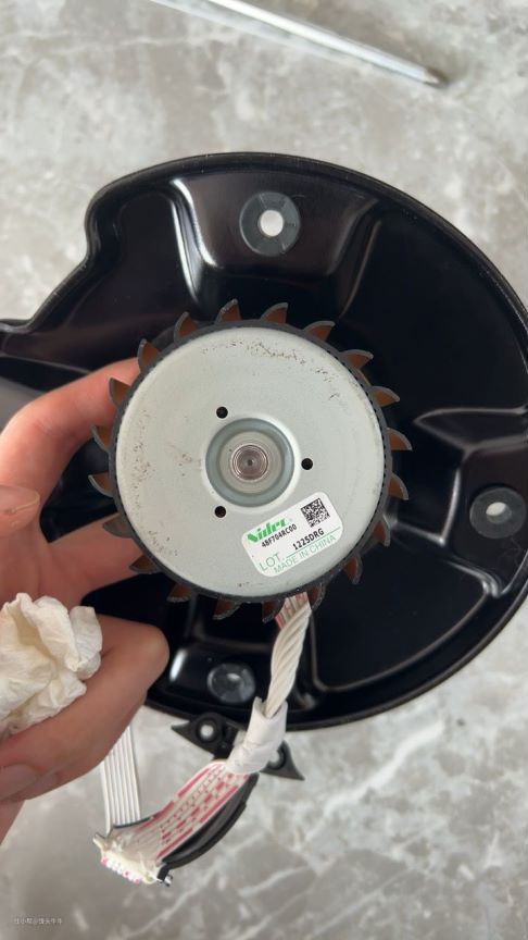 而风机由于连着风机组件是一体的,我们用了很多工具都只能拆出一个钢网。