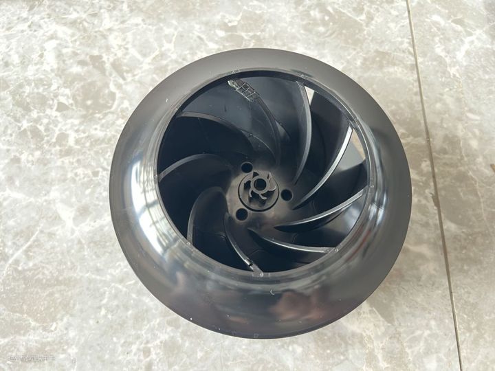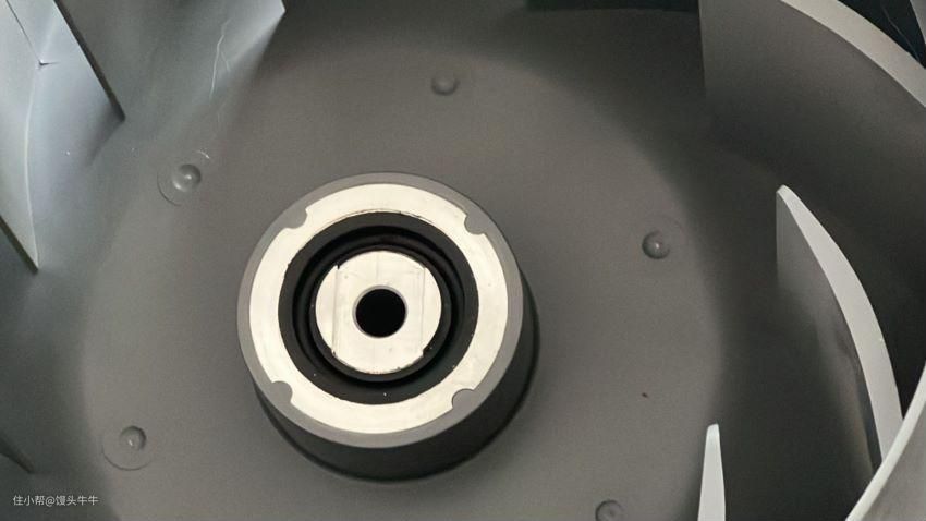 而它的风机也是亮点,风机的扇叶是本次测评中最大的,厚度比起空气循环扇还要更高一点。拆开后我们可以看到扇叶中心部分拧开六爪盖有一个小铝合金垫片,这块小铝合金垫片虽然只是块金属,但是在你长期使用的过程中,这块垫片可以进行散热以及减少电机磨损的功能,这种一块的成本也是要几块钱的,尤其是面向耐用性去制作的,成本一般会加一点。