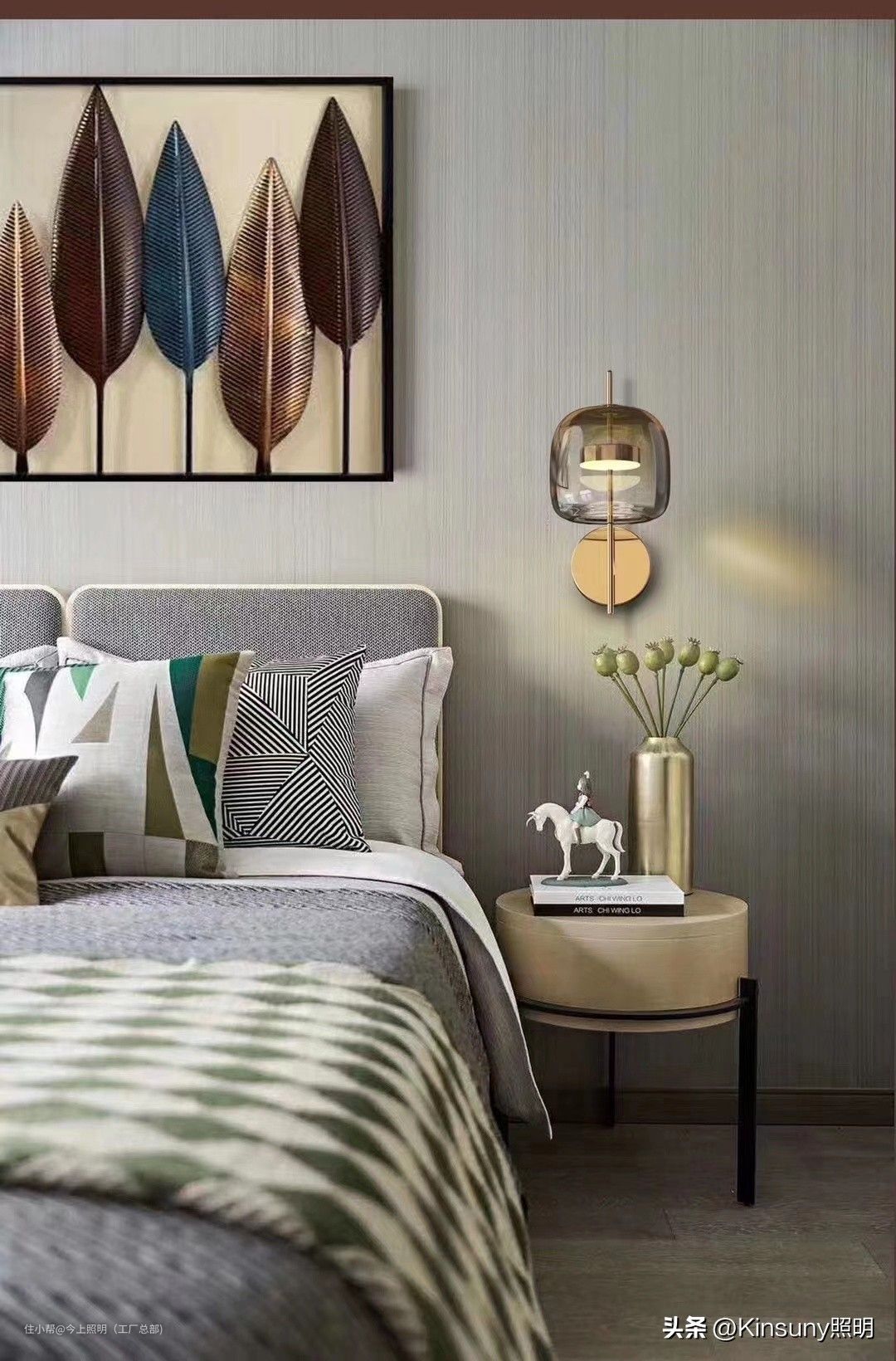②床头柜区域——壁灯提供重点光,满足灯光需求的同时,也可以作为空间的装饰品点缀空间,提升空间质感。