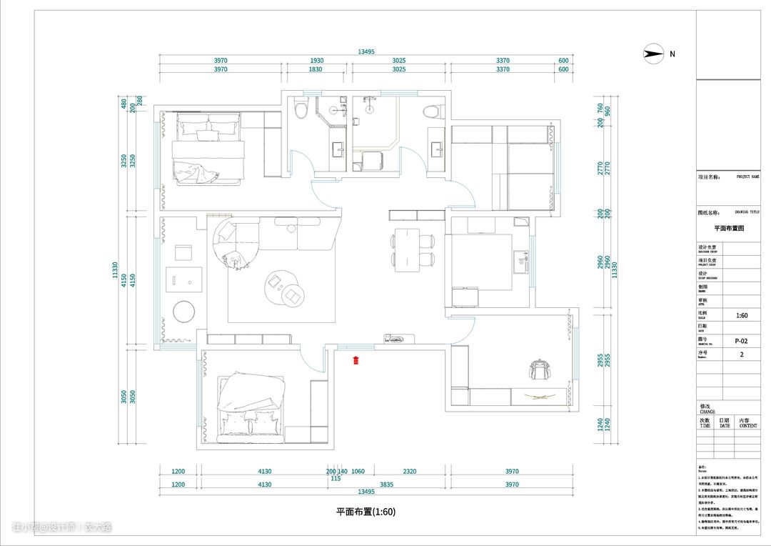 - 重新规划了客卧门口的布局,在客卧门口沿墙做了酒柜,遮挡了客卫的门,优化了入户门与客卫门之间的布局;