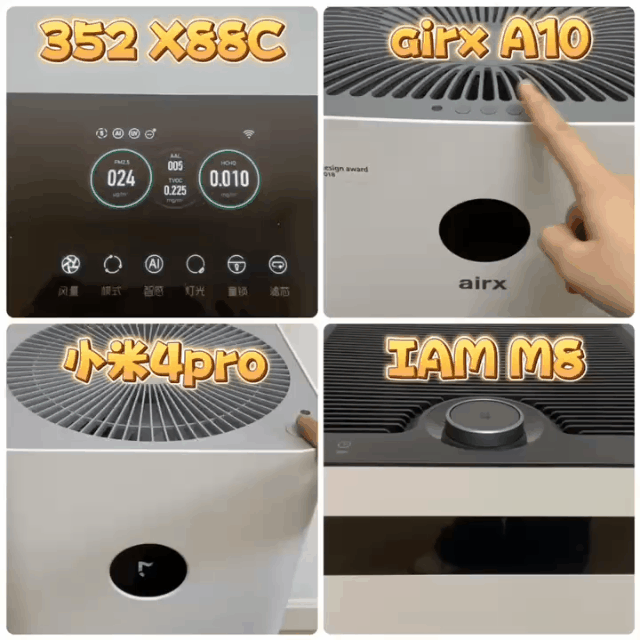 以下对比图是这8款空气净化器的显示屏和操作界面,下面我会给大家看看实际操作方式。