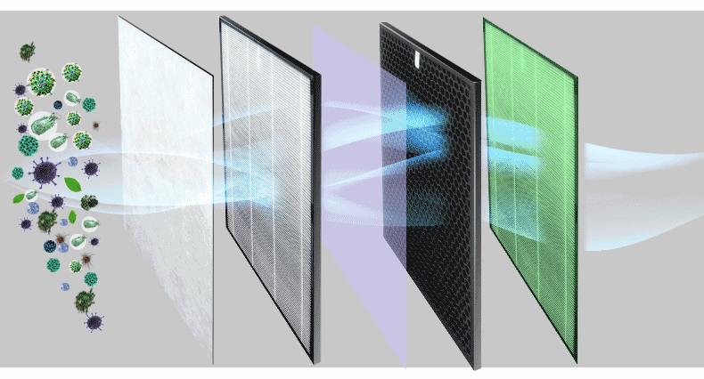 - 用料充足,滤网全面,种类丰富:初效滤网+H11滤纸+除敏因子+醛解分子筛+紫外光伏穹顶+X-wave除醛通道+M型铝网粘炭+H13级HEPA滤网+高浓等离子群9重设计。