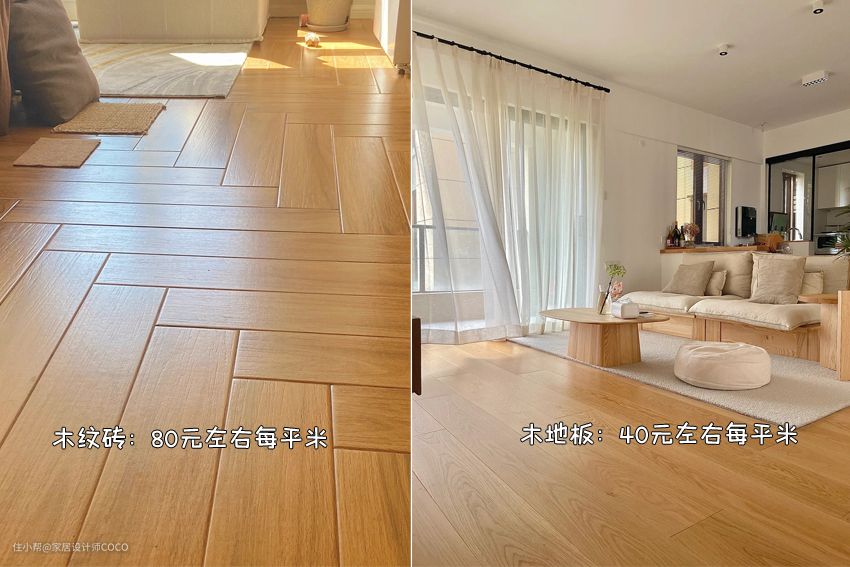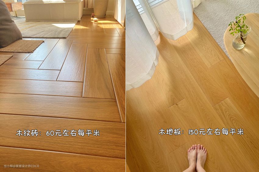 结合“材料”“施工”两方面综合来看,似乎木地板的成本会更高一些,但是你不要忘了,木纹砖后期的“美缝”是一项很大的支出,所以综合比较下来算的话,两者的差距并不是很大。