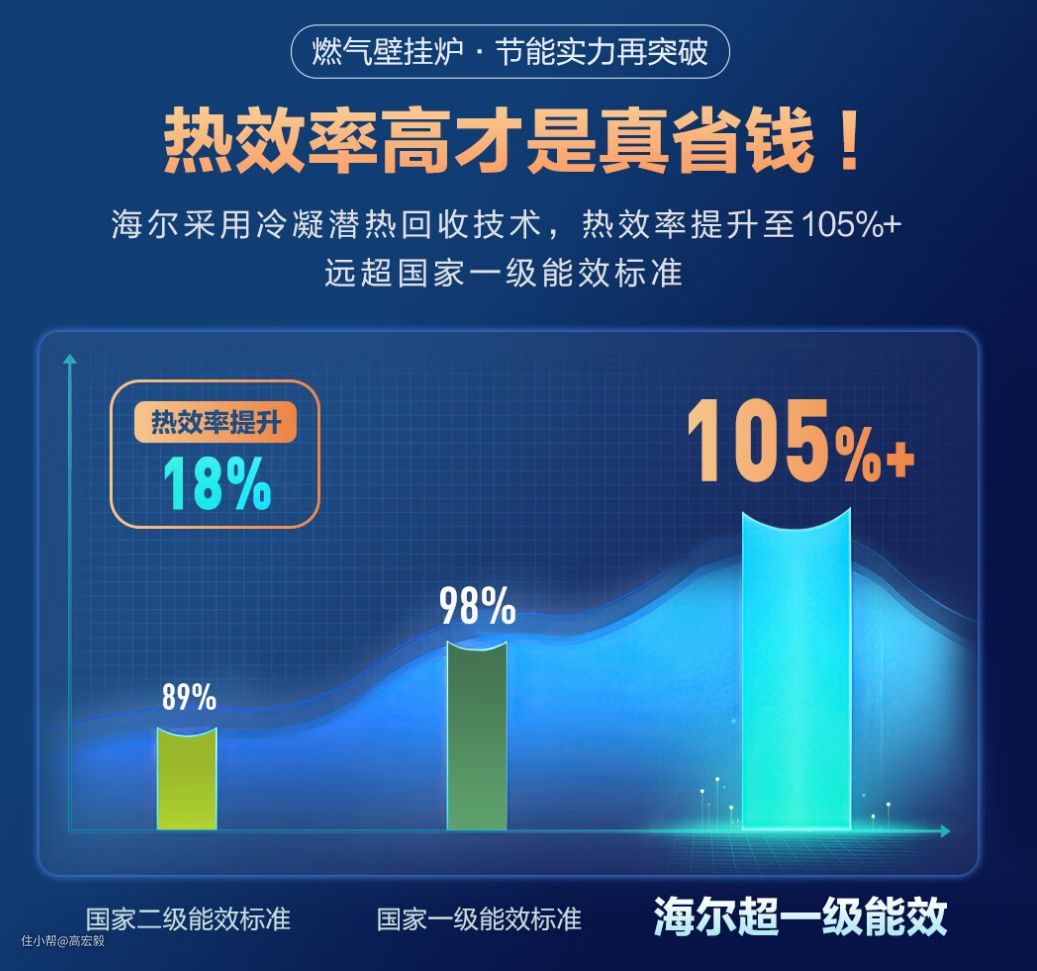 海尔JN7独特的冷凝潜热回收技术,让它非常节能省气,一个冬天能省千元燃气费。