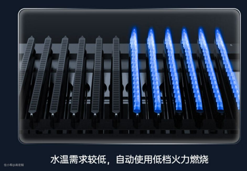 当水温需求比较低的时候,自动使用低档火力燃烧,节能省气,当水温需求比较高的时候,自动开启高档火力燃烧,切换自如。