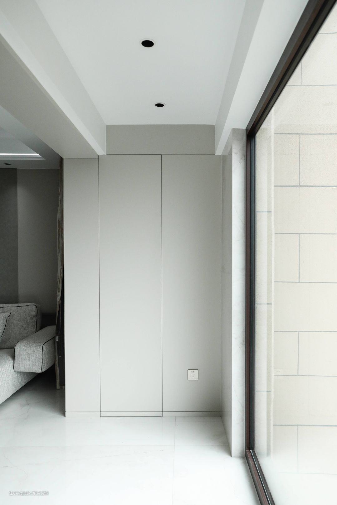 阳台我们可以将承重墙隐藏进整排柜体之中,让墙体与收纳柜完美结合,既不影响整体效果,又能有充足的储藏空间,简洁又实用。