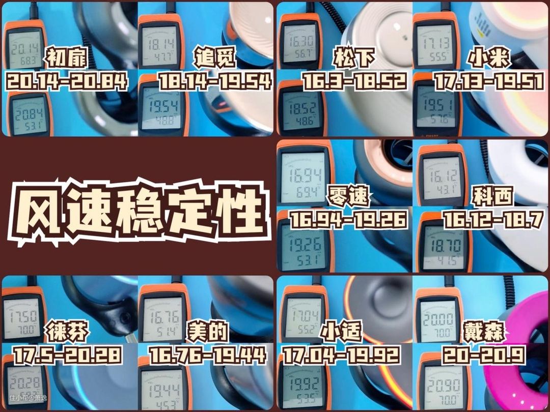 测评方法:用风速仪检测前后一分钟的风速最高值和最低值并记录其差值,差值越大代表风速稳定性越小。