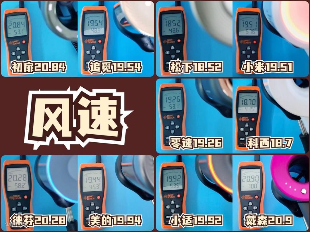 测评方法:使用风速仪来测量风速的大小,对比数值