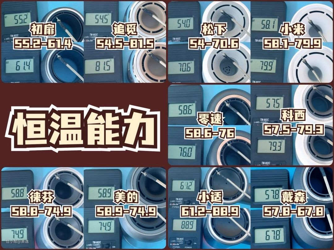 这几款吹风机的温控能力还可以但不够出色,平均处在15摄氏度上下,可以继续优化。