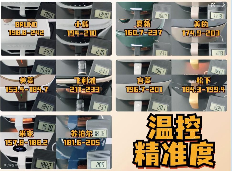余下的空气炸锅温控精准度就非常普通了,温度波动大的同时温度距离200℃非常远,米家和夏新最高始终无法达到200℃,食物翻车概率大,而且长期使用有安全隐患。