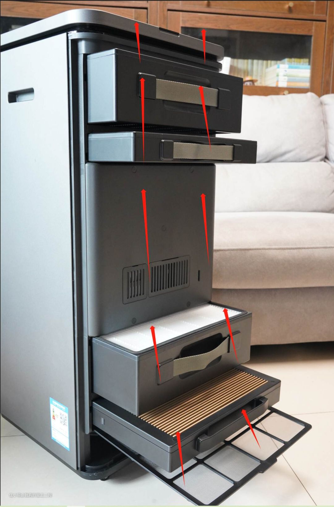 另外多说一点,塔式结构的过滤效果好,但是设计中增加了风道的通行距离,这就对提供风力的风机提供了极高要求。华为智选IAM X5配备有德国进口的EBM电机,拥有出色的性能表现,可以确保机器保持连续稳定的功能性能。