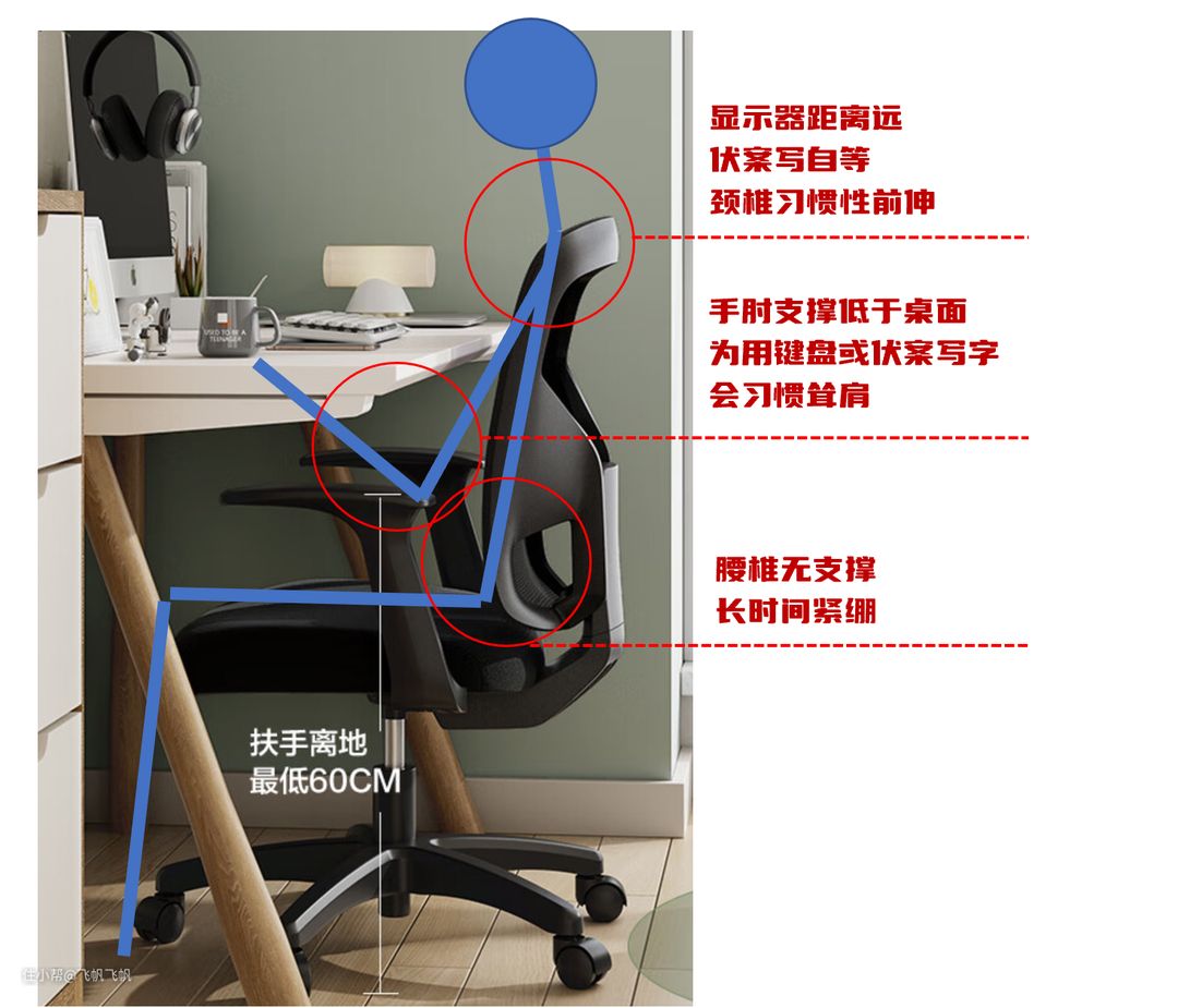 这里就简单用常规办公室的网椅来做个简单的图解,表达大家有这三种问题的核心原因。