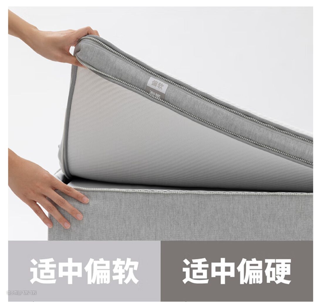 相较于部分用户比较喜欢有支撑、但又稍微硬一些的需求,这次增加可双面切换的舒适层,软硬都照顾到了,适应99%的用户了,剩下1%是硬板床用户,加一层巾都觉得太软的那种。