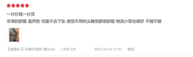 这个用户的评价其实很好的形容了繁星的特点,软和包裹,是有比较典型的美式软床垫。