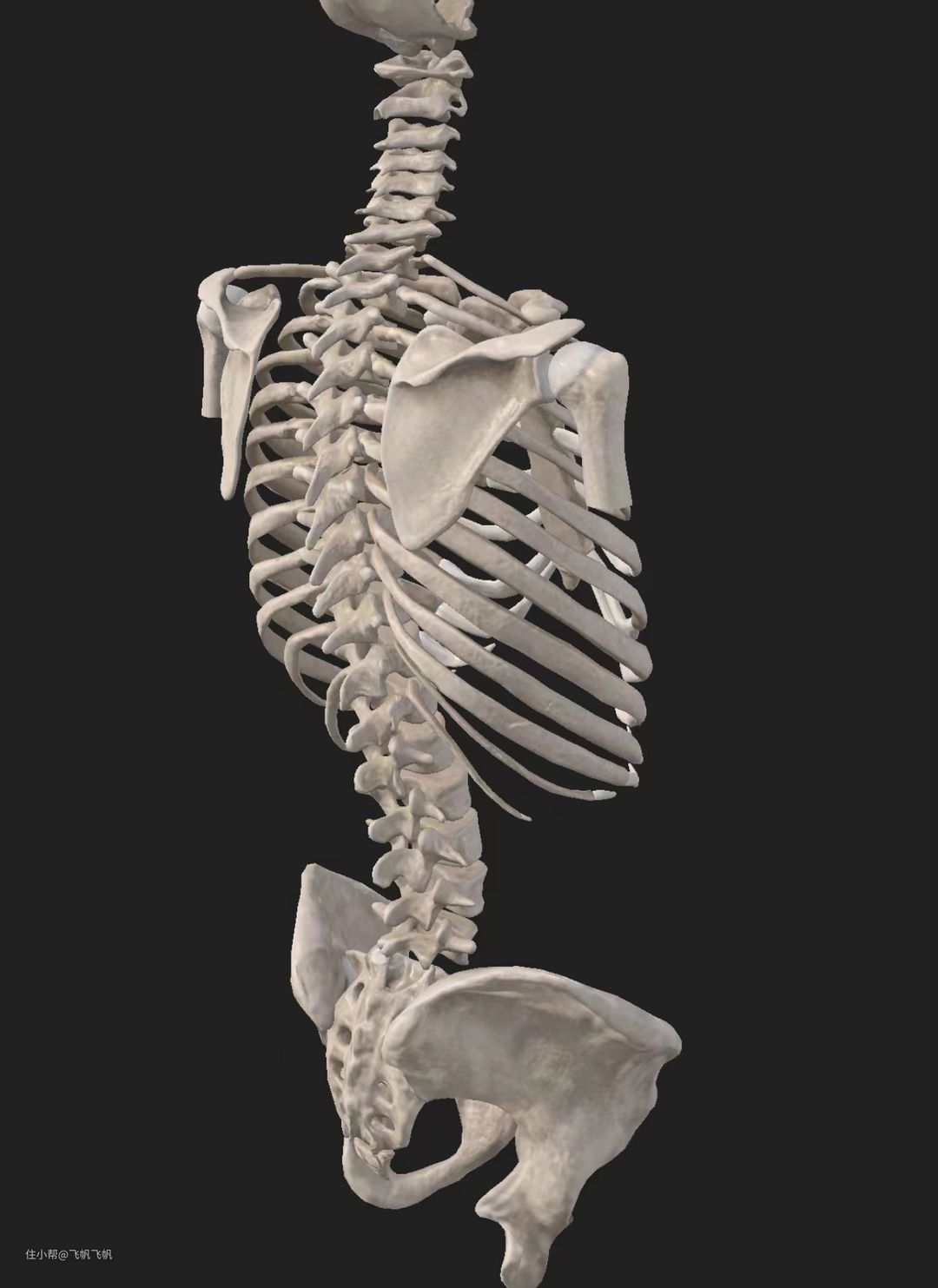 上图是后侧方人体脊柱图,稍微面对我们这边的是背后。可以看到人体的整条脊柱呈现合理的曲线。