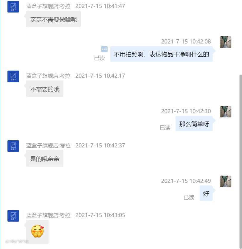 但是咨询客服后是无条件退货,只要沟通确认,蓝盒子即刻叫顺丰上门收走!于是我当时毫不犹豫就下单了。