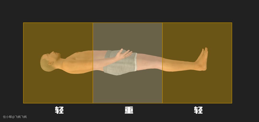 三分区也是恰好对应了人体不同的重量区域,肚子、骨盆位整体重量最重,而肩膀与头部、腿部都相对较轻,三个分区结合袋装弹簧的特性,适应性就很广了。