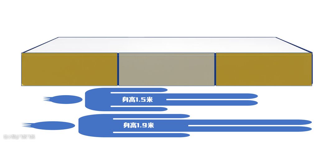所以从不同身高角度考虑,市面上最合理的是三分区床垫,身高1米5跟1米9的人都可以得到分区的照顾。