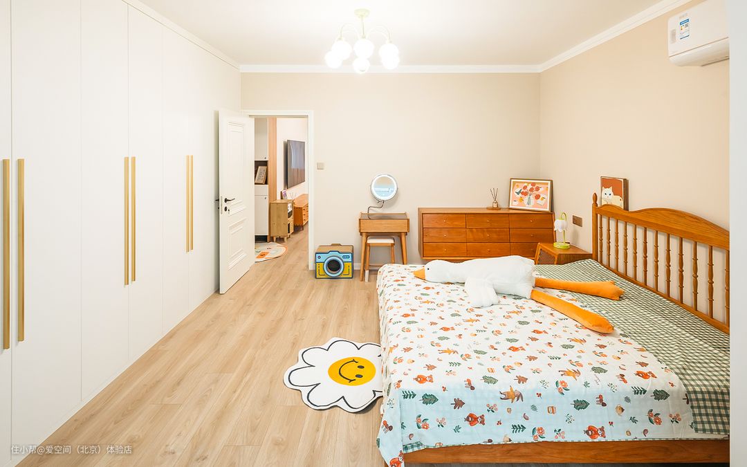 @王同学的建议:如果房间有大柜体,将柜体嵌入设计,看不到柜体侧面,大脑就会有“薄片”的感觉,空间压抑感消失,房间也就显大了。