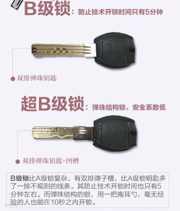 在门锁的领域,锁芯的等级被分为A级、B级和C级三个级别,每个级别都有其特定的设计和结构: