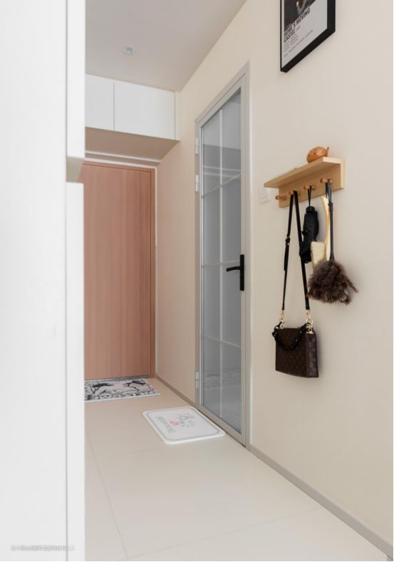 2.细节的处理:玄关柜的细节装饰,如线条的颜色、拉手的设计,都应与整体色彩相协调,这样可以让整个玄关的视觉效果更加统一。