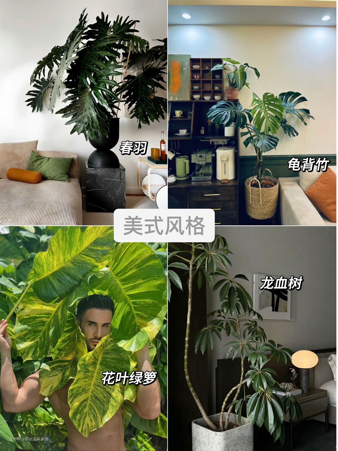 第四,美式风格,都知道美式是出了名的舒服,我们就可以去选择高大的天然新科植物或棕榈类植物。比如龟背竹,春羽,龙血树,花叶绿萝,分分钟就有一种回归自然的美好。