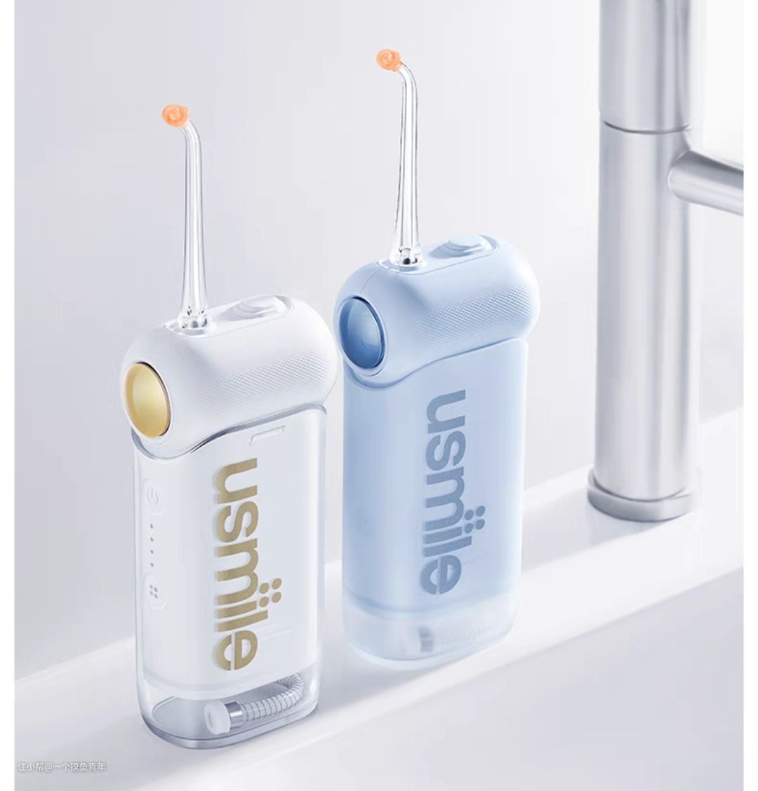 Usmile这个牌子的知名度还是很高的,旗下产品颜值都很高,这款冲牙器的外观也很新颖亮眼,顶部有独特的圆球设计,设计感十足,具有很高的辨识度。