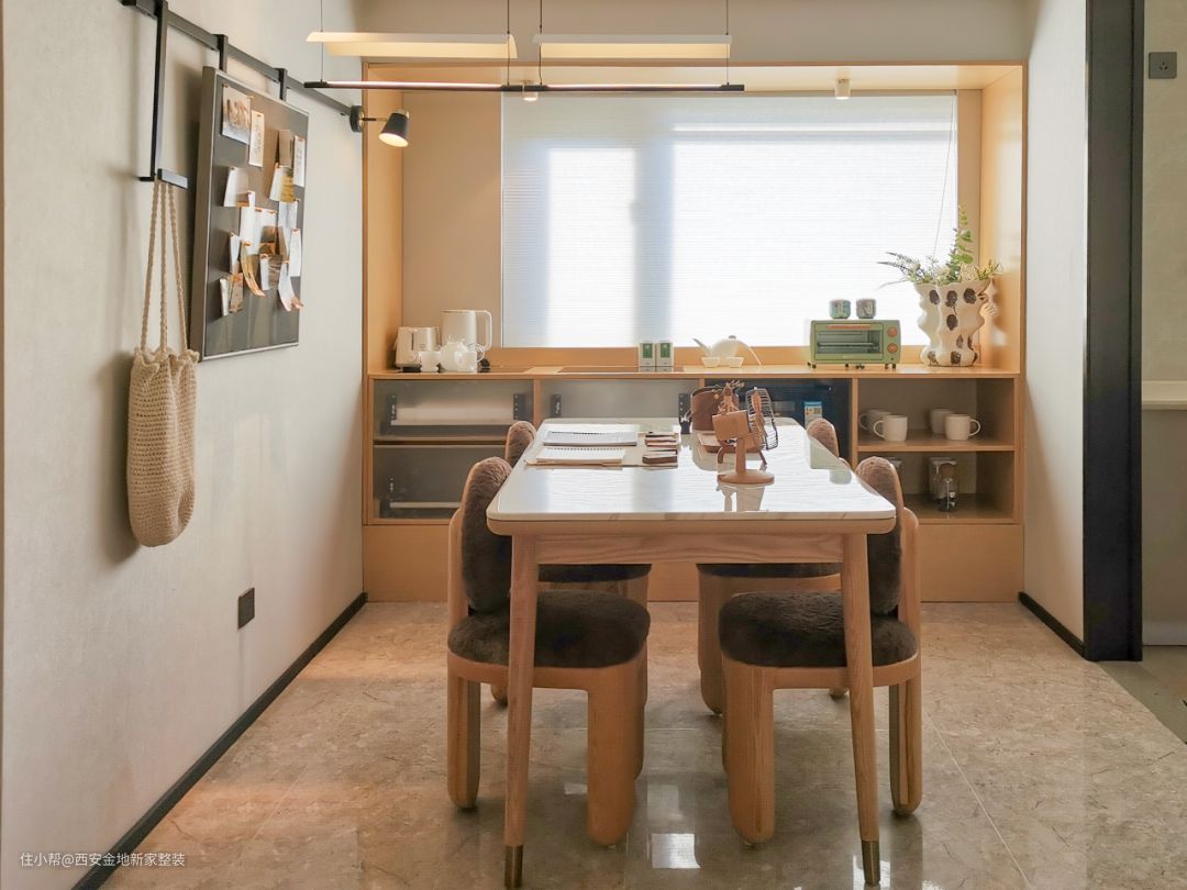 2、餐厅沿窗户做餐边柜,既能收纳也不会遮挡采光;