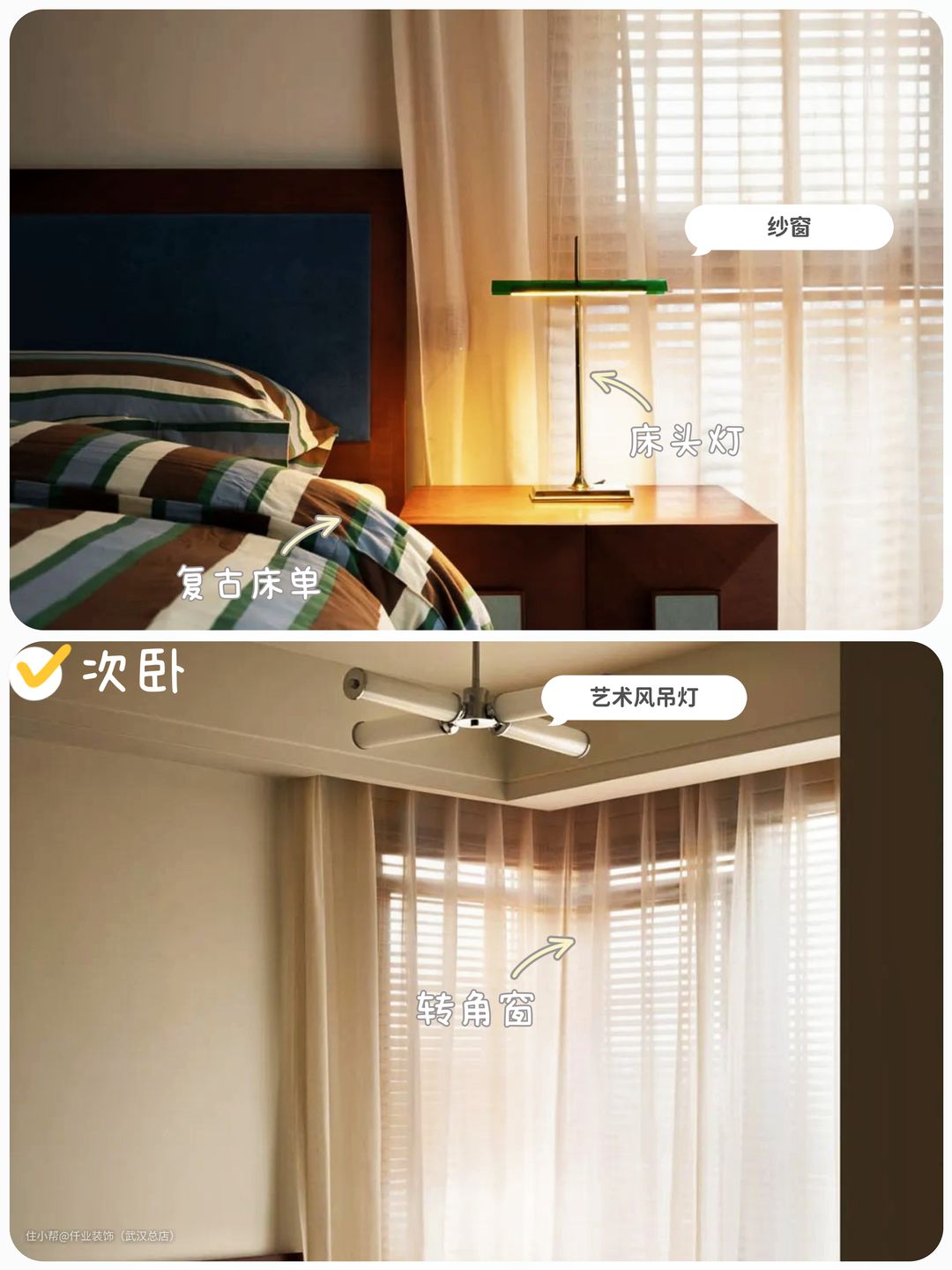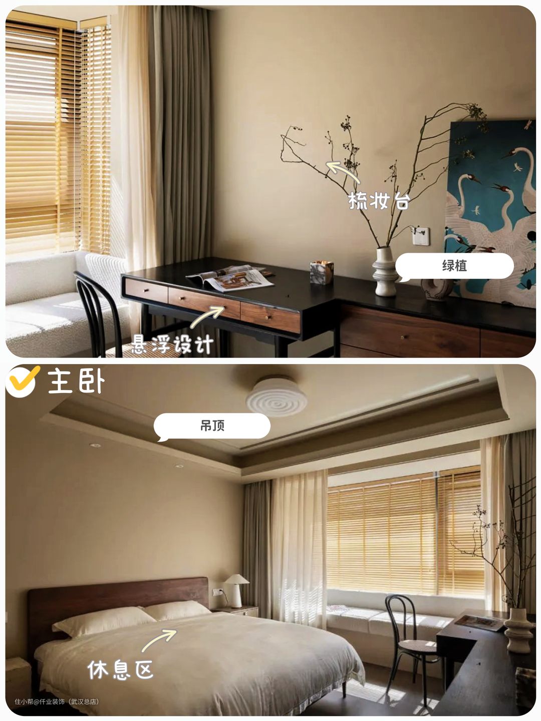 🍑🍑主卧室使用了之前的家具,胡桃木家具还是很百搭的,无论什么风格都能驾驭